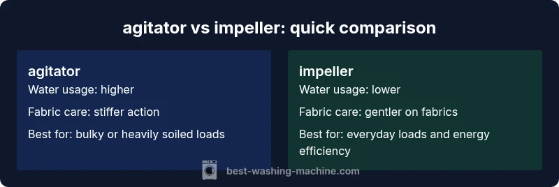 Understanding agitator vs impeller in washing machine designs helps homeowners, renters, and laundromats choose the right machine for their day-to-day needs. The agitator vs impeller in washing machine debate centers on how the drum moves laundry and how that motion translates into cleaning, fabric care, and water use. According to Best Washing Machine Team, the choice often hinges on load types, space, and priorities like energy efficiency or soil removal. This guide compares the two core designs, explains their trade-offs, and provides practical decision criteria so you can shop with confidence.