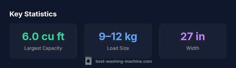 Biggest washing machine size for typical households tops out around 6.0 cubic feet (about 170 liters) in the US. In many European models, large loads are described in kilograms, commonly 9–12 kg per cycle. Actual maxima depend on the model, installation space, and whether the unit is front- or top-loading.