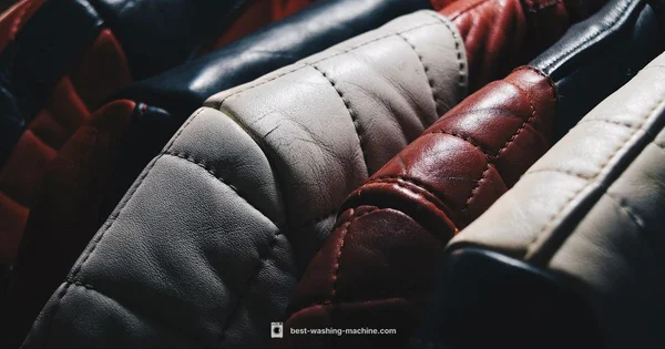 Leather is usually not machine-washable; clean by hand with appropriate products.