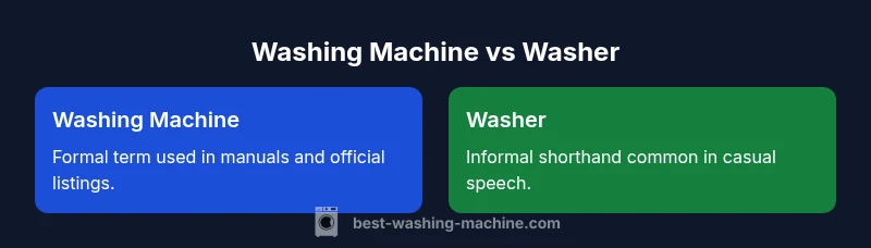 The terms washing machine and washer describe the same major laundry appliance in most contexts; there is no technical difference. 'Washer' is simply a shorter, informal form used in everyday speech and in some regions. According to Best Washing Machine, understanding audience language helps shoppers and repair pros avoid confusion.