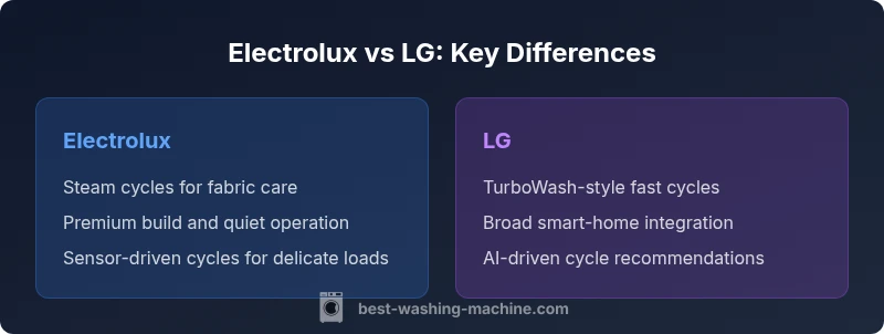 For most households, LG delivers faster wash cycles, smart features, and strong overall value, while Electrolux emphasizes fabric care, steam options, and premium build quality. If your priority is speed and connectivity, LG often has the edge; if you prioritize gentle fabric treatment and steam-assisted care, Electrolux is a compelling choice. According to Best Washing Machine analysis, the best pick depends on your laundry goals, budget, and tolerance for newer tech.