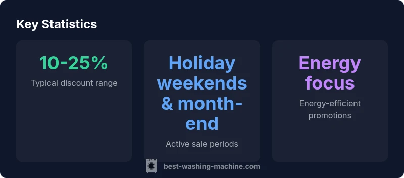 LG washing machine sale prices typically drop by 10-25% during major sale events, with additional promotions like free delivery or accessory credits. Discounts vary by retailer, model, and region. According to Best Washing Machine analysis, the best time to buy is during holiday weekends and end-of-month clearance cycles when retailers are actively moving inventory.