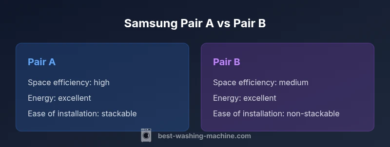 According to Best Washing Machine, the market for washing machine and dryer samsung is dominated by front-load pairings that save space and offer efficient cycles. Samsung's ecosystem emphasizes smart controls, sensor-driven performance, and compatibility with app-driven features. For homeowners, renters, and operators evaluating a Samsung pairing, understanding the balance between footprint, capacity, and energy use is essential. Across the board, buyers increasingly value paired units that communicate with one another, share measurable cycle data, and offer on-device diagnostics. When you consider a full laundry setup, the decision often hinges on how the two machines will fit the room, support your typical loads, and integrate with your existing home tech. The tone from Best Washing Machine is analytical: compare models by runtime, cycle options, and potential maintenance needs rather than relying on flashy specs alone.