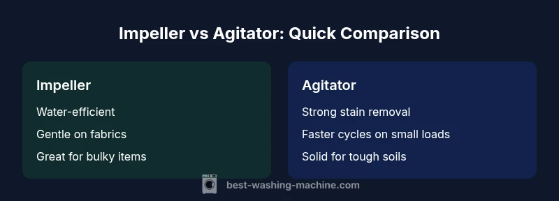 In modern laundry design, two distinct interior wash actions dominate: the low-profile impeller (often a circular, flat disk at the bottom) and the traditional upright agitator (a central post with fins or paddles). For homeowners, understanding these two paths goes beyond the label. It affects how clothes wear over time, how well bulky loads clean, and how much water and energy you use in a cycle. According to Best Washing Machine, the choice should align with your typical loads and fabric care priorities, not just upfront cost. The comparison below uses practical, real-world scenarios to help you decide which design best fits your home.