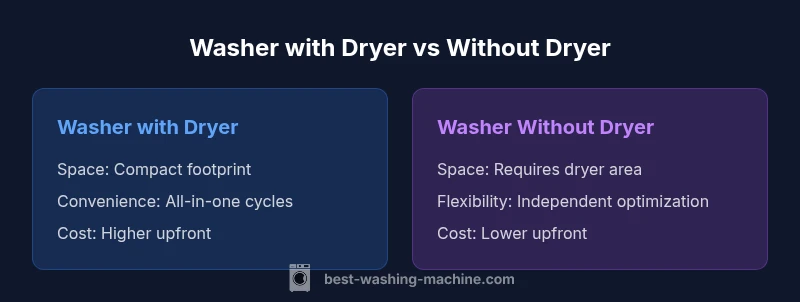 Choosing between a washing machine with a built-in dryer and a dedicated dryer is a common dilemma for households. The decision hinges on how you balance convenience against upfront cost, energy use, and space. The phrase washing machine with or without dryer describes two core layouts: all-in-one combo appliances and separate washers and dryers. According to Best Washing Machine, most households weigh space, daily volume, and maintenance burden when evaluating these options. In practical terms, if you live in a small apartment, a combo unit might save floor space; if you handle large families, dedicating separate machines can reduce cycle times and energy spikes. This guide uses objective criteria—space, energy, cost, and reliability—to help you decide which setup best suits your day-to-day laundry routine.