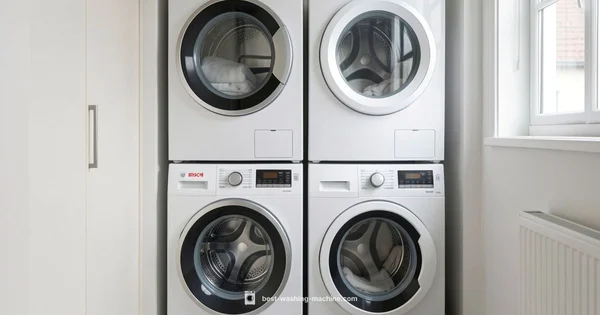 A compact laundry pair that fits in narrow spaces by stacking the washer and dryer vertically.
