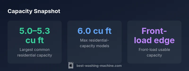 When comparing models, start with the official cu ft figure but also check the “usable capacity” or “load capacity” in the product manual. Look for example loads and item measurements from buyer guides or manufacturer videos to visualize how bulky items will fit. Consider the basin depth, basket shape, and whether an agitator is present; impeller-based designs typically provide more flexible loading with bulky items, while agitators can limit the biggest loads but may provide better agitation for smaller items. Finally, compare energy and water use per cycle for the same load size to determine true efficiency. In 2026, the Best Washing Machine team finds that pairing capacity with proper loading habits often yields better overall performance than simply choosing the largest cu ft on the page.