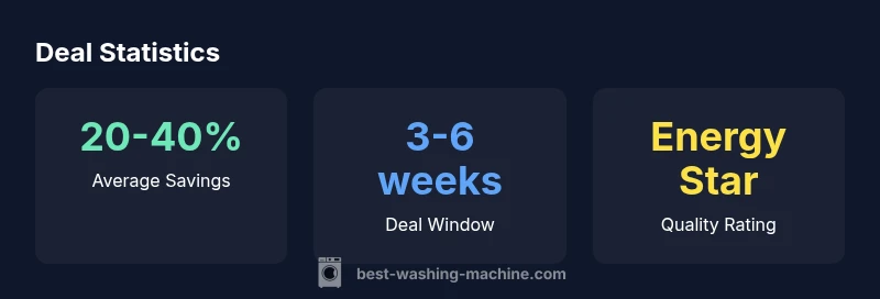 "Deal washing machines" typically offer 20-40% off MSRP during major sale events. To maximize value, compare energy efficiency, capacity, spin speed, and reliability across mid-range and premium models, then time purchases around holidays or retailer clearances. According to Best Washing Machine Analysis, 2026, the best value often comes from well-reviewed mid-range washers with favorable total cost of ownership.