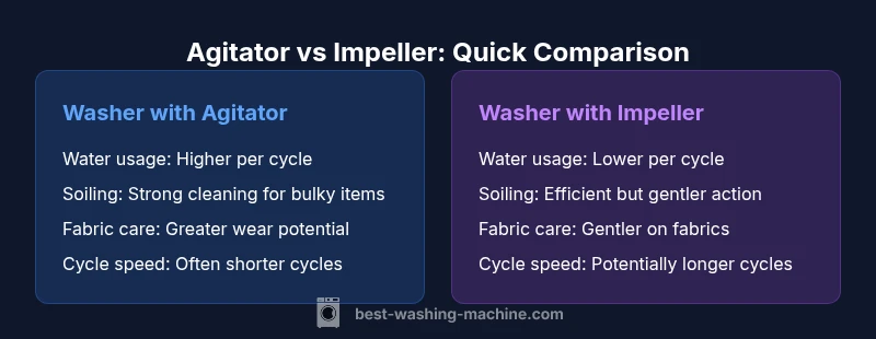 Understanding the difference between washing machine agitator and impeller helps you weigh cleaning performance, water usage, and fabric care. In short, agitators offer aggressive scrubbing and faster cycles, while impellers rely on low water and gentle tumbling. This quick comparison highlights how each system matches different laundry needs and budgets, enabling a smarter purchase.