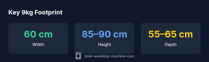 A typical 9kg washing machine footprint is about 60 cm wide, 85–90 cm high, and 55–65 cm deep. Many models use around 60 cm floor space, with extra room around the sides for airflow, hoses, and access to the drain. Always check exact spec sheets. Consider measurement for door swing and installation clearance as you compare models.