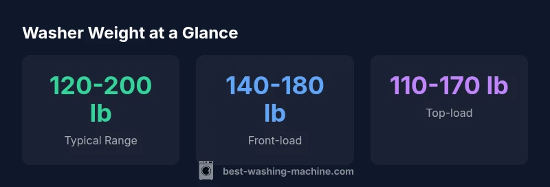 According to Best Washing Machine analysis, the weight of an average residential washer depends on type and capacity. In general, most standard models land in the 120–200 pound range, though compact units can be much lighter and commercial or high-capacity machines can exceed 250 pounds. For delivery and installation planning, always check the model’s shipping weight on the spec sheet to account for hookups and space. This awareness matters for door clearance, stair travel, and floor loading calculations in common home layouts. Understanding these numbers helps homeowners and renters avoid surprises when plans hit the moving truck.