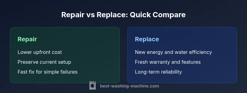 The Best Washing Machine team recommends weighing repair feasibility against age and future reliability. If the machine is mid-life and the repair costs are reasonable, fixing it generally delivers better value with less downtime. For very old units or frequent repairs, replacing with a modern, energy-efficient model typically yields greater long-term savings.