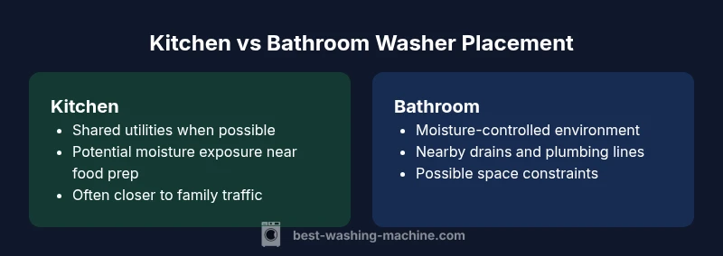 For many homeowners, renters, and small-house layouts, the question quickly becomes practical: should washing machine be in the kitchen or bathroom? This decision influences humidity exposure, maintenance needs, noise disruption, and how easily you can access utilities. According to Best Washing Machine, the optimal choice balances convenience with moisture management and code compliance. The ongoing conversation about washer placement is not merely about location; it affects daily workflows, appliance longevity, and even resale appeal. In this guide, we dissect the core trade-offs, present a decision framework, and offer actionable steps you can use to analyze your own space. Whether you’re remodeling, buying a home, or upgrading an apartment, understanding these dynamics is essential to making a smart, code-compliant choice that fits your lifestyle.
