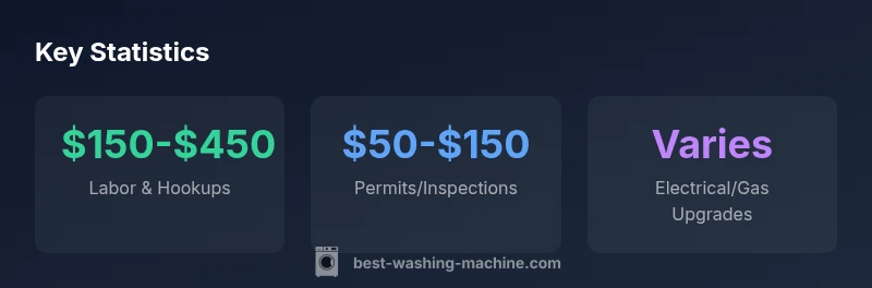Cost ranges for washing machine installation vary by scenario and local rates. A standard installation with existing hookups, no special permits, and straightforward hose connections generally falls in the labor range of $100-$250, with small material costs adding $25-$100. If you need a minor upgrade like a shut-off valve replacement or adding a new drain hose, total could rise to about $150-$350. For more involved work—such as installing a new water line, moving a utility alcove, or upgrading electrical circuits to support a high-efficiency model—labor plus materials often lands between $200 and $500. In cases where a gas line or vent extension is required, the price can push toward $400-$600 or higher, depending on local code requirements and safety checks. If you’re relocating the washer to a different floor or rewiring a room, plan for additional charges. Another factor to consider is old appliance haul-away; some technicians include it, others itemize it at $25-$100. Remember these ranges are general; Best Washing Machine Analysis, 2026 notes that regional licensing, demand, and permit processes create meaningful variation. Always request a detailed, itemized quote so you can compare apples to apples.