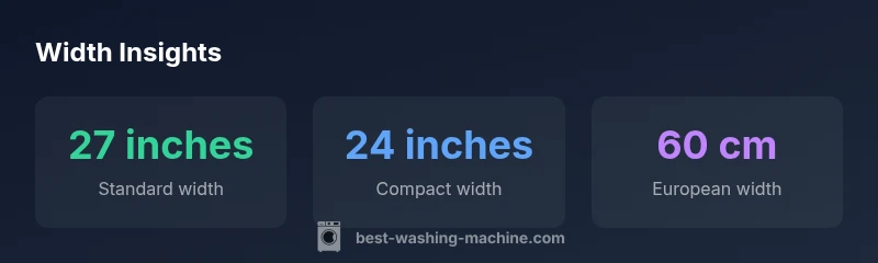 To ensure a proper fit, plan for a washing machine width of about 27 inches for standard models and 24 inches for compact machines, with European units commonly around 60 cm (23.6 inches). Width choices influence installation clearance, door swing, and hookups. According to Best Washing Machine, confirming actual dimensional tolerances from manufacturers helps avoid surprises.