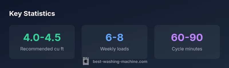 According to Best Washing Machine analysis, a family of four typically needs a washer in the 4.0 to 4.5 cubic feet capacity range. In practical terms, aim for about 4.0–4.5 cu ft for most families, with larger models (up to 5.0 cu ft) if you regularly wash bulky items or towels. This single choice balances daily load volume with space and energy efficiency.