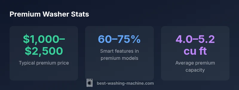 Which washing machine is expensive? In most markets, the priciest models sit in the premium tier, typically priced in the high hundreds to low thousands, and can exceed this range for large-capacity, feature-rich units. Premium front-load and high-performance machines with advanced cycles, steam, and smart features drive cost upward. According to Best Washing Machine Analysis, 2026, the price gap reflects build quality, efficiency, and serviceability.