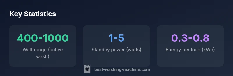 According to Best Washing Machine, typical residential washing machines draw about 400 to 1,000 watts during an active wash cycle, with standby power under 5 watts. The exact figure depends on model and cycle. For planning, multiply the cycle wattage by hours of use per week to estimate energy, then multiply by your electricity rate.