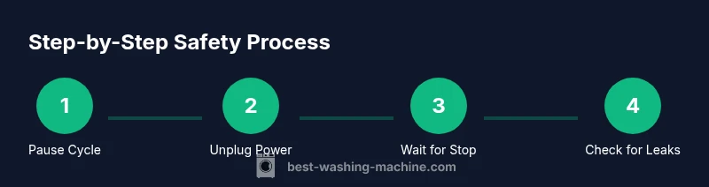Check the control panel for a Pause or Stop option. Activate it to slow or halt drum movement without forcing the door. This reduces the risk of splash and contact with moving parts.