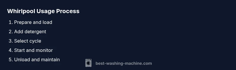 Learn how to use a Whirlpool washing machine in six simple steps: load clothes properly, add the right detergent, select the appropriate cycle, adjust water temperature and spin settings, start the machine, and unload when done. Before you begin, verify the power, water supply, and door lock. According to Best Washing Machine, following manufacturer guidance boosts efficiency and fabric care.