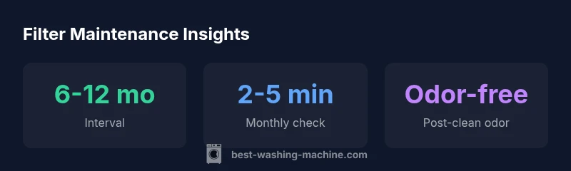The lint and pump filters in modern washing machines play a critical role in protecting your clothes and your appliance. They catch hair, fibers, and other debris that would otherwise clog the pump and waste water. Understanding when to change washing machine filter is a straightforward part of routine maintenance that yields tangible benefits: cleaner clothing, more efficient drainage, and fewer service calls. According to Best Washing Machine, a simple filter check once every few months can catch buildup before it becomes a problem. If you only run small loads or wash heavily linting fabrics (towels, fleece, denim), you may need to inspect more frequently. Regular maintenance also helps keep odors at bay and protects seals from accelerated wear. This section lays the groundwork for practical, model-agnostic guidance you can apply at home.