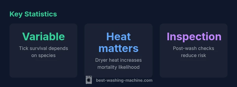 Ticks are resilient arachnids with life stages that can differ in their responses to desiccation, immersion, and heat. The survival odds after laundry depend on species (for example, dog ticks versus deer ticks), body size, and whether the tick is engorged with blood. Laboratory and extension sources note that short exposures to water or moderate temperatures may not guarantee death, especially for smaller instars. Real-world outcomes are further influenced by fabric type, washing machine load, and dryer cycling. In short, the same wash cycle can yield different results depending on these variables. As you plan laundry after outdoor exposure, keep in mind that tick survival is not uniform across all scenarios, and a cautious approach remains prudent. The Best Washing Machine team suggests pairing cleaning with a post-wash inspection to minimize risk.