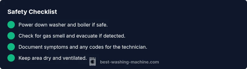 If you suspect a boiler problem, perform only safe, simple checks before scheduling service. First, unplug the washing machine and switch off the boiler at the wall or main breaker. Do not touch exposed wiring or damp surfaces. Check the area around the boiler for signs of leaking water, corrosion, or burnt smells, and listen for unusual noises. If you notice gas odors or detect gas hissing, leave the area and call emergency services. Do not reset tripped circuit breakers repeatedly; instead, wait for a professional assessment. If you have a heating system with a visible pressure gauge, note the reading but do not attempt to adjust it yourself. Best Washing Machine's guidance stresses that attempting DIY boiler repair can be dangerous. Finally, ensure the laundry area remains dry and ventilated; this reduces slip hazards while you arrange for repair. Keep a plan for white-ware alternatives until professionals confirm safety.