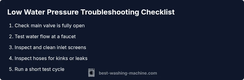 Urgent troubleshooting guide to use a washing machine with low water pressure safely. Learn quick checks, a diagnostic flow, step-by-step fixes, safety tips, and prevention strategies from Best Washing Machine.
