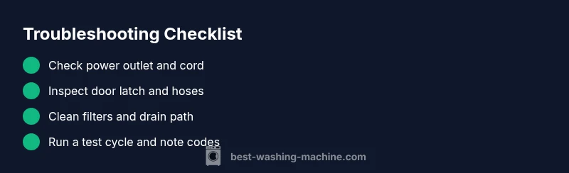 Start with the simplest checks: verify the power outlet works by plugging in another device; ensure the washer is plugged in, and the cord is intact. Check the door/lid switch; a faulty latch can prevent start or spin. Inspect the water supply valves to confirm water is flowing, and examine the drain hose for kinks or crush points. Clean or replace the lint filter to maintain proper drainage. Keep an eye on any error codes displayed, and note them for reference when researching fixes.