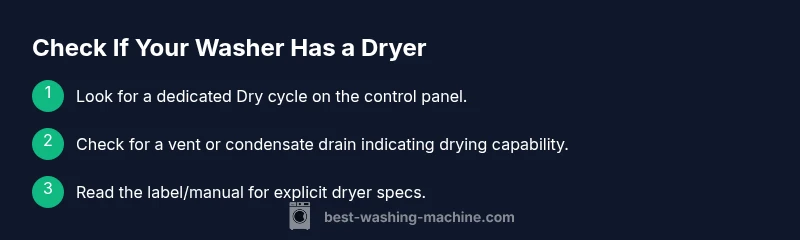 Learn how to identify a built-in dryer in your washing machine, where to check, and the steps to confirm features. Practical checks, model specs, and alternatives for non-dryer models explained.