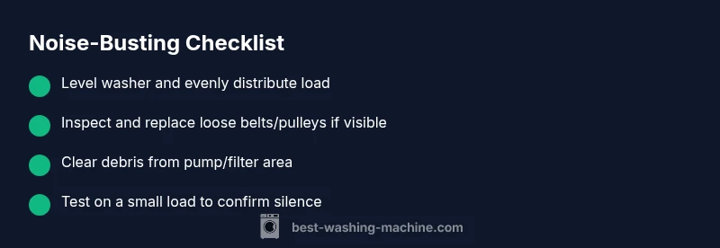 If you’re wondering how to stop washing machine making noise, you’re not alone. Noise disrupts daily routines and can hint at underlying problems. This guide provides urgent, practical steps you can take now to reduce or eliminate common sounds. According to Best Washing Machine analysis, most residential noise issues come from a few repeat culprits: an unbalanced load, loose components, or debris that rattles inside the drum. Start with safe, simple checks and progress to more detailed troubleshooting only if needed. The goal is to restore quiet operation while protecting your machine and your home from further wear.