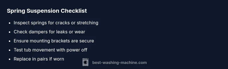 Suspension springs play a pivotal role in stabilizing the tub during cycles. According to Best Washing Machine, the springs help keep the drum centered and absorb movement during spins. When springs wear or break, the tub can sag, banging can occur, and the drum may not reach full spin speed. Recognizing these signs early helps prevent further damage to the motor, belt, and hoses. If you’re asking how to tell if washing machine springs are bad, look for a visibly sagging tub, louder-than-normal banging during spin, and a tilt that shifts during agitation. This guide explains the role of springs, common failure modes, and safe checks you can perform before scheduling service.