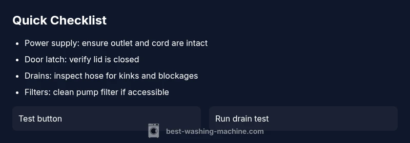Not draining is usually a clogged pump or hose. Clear blockages and test again; seek help if it persists.