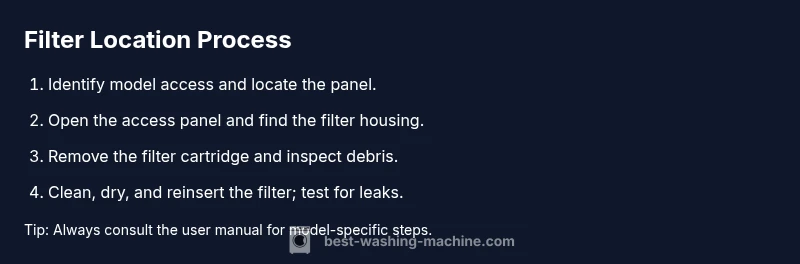 To precisely locate the filter on your Samsung model, check the user manual’s maintenance or service section. If you don’t have a manual, search the model number on Samsung’s support site; many model pages include a diagram of the filter housing. Look for keywords like 'lint filter', 'pump filter', or 'drain filter'. If your model uses a rear access panel, you may see a small removable plate on the back panel. Having a photo of the panel helps you avoid unnecessary disassembly and reduces the risk of misplacing parts.