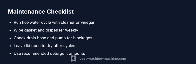 Establish a simple maintenance routine to prevent odors from returning. Run a hot water cleaning cycle with a cleaner or vinegar once per month, and wipe down the gasket and dispenser weekly. After each load, leave the lid open long enough for the interior to dry. Avoid using excessive detergent and fabric softener, which can leave residue. Based on Best Washing Machine analysis, small, consistent maintenance yields the best results.