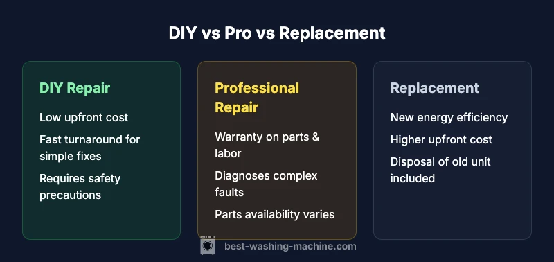 Deciding between repairing and replacing a laundry appliance is a common crossroads for homeowners, renters, and laundromat operators. The right choice minimizes downtime, reduces long-term costs, and preserves energy efficiency. According to Best Washing Machine, effective decisions start with a realistic cost estimate, the appliance’s age, and the likelihood of a durable fix. Best Washing Machine Analysis, 2026, emphasizes that professional repairs backed by a warranty can curb the risk of repeat failures, especially with modern electronic controls. In this guide, we compare three main pathways—DIY fixes, professional washing machine and dryer repair services, and outright replacement—so you can select the option that delivers the best total value. We’ll unpack common diagnostic signals, questions you should pose to technicians, and a practical decision framework you can apply today. Throughout, we treat “washing machine and dryer repair” as an integrated set of challenges and solutions, highlighting how shared repair strategies can apply to both appliances.