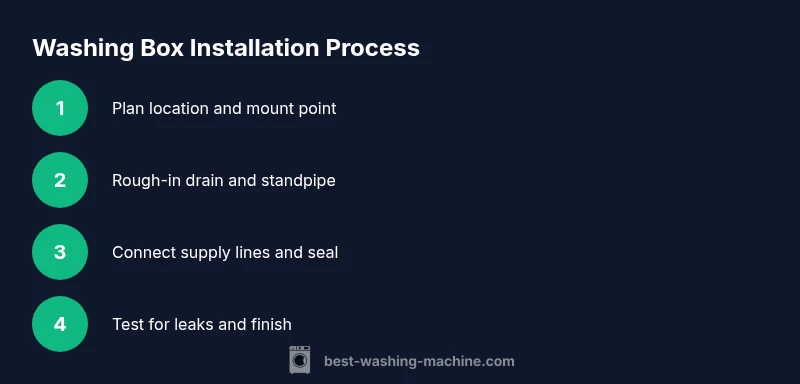 Washing machine box installation is a practical approach to housing a washer’s water supply valves and drain in a single, accessible unit. The box typically sits within a recessed laundry niche or wall cavity and provides shut-off valves, a standpipe or drain connection, and a clean, finished surface for easier maintenance. The importance extends beyond cosmetics: a well-installed box minimizes leaks, reduces drift and moisture on floors, and simplifies future servicing. According to Best Washing Machine, a correctly installed box aligns with standard mounting heights, ensures proper drainage slope, and uses materials chosen for residential use. For homeowners and renters, investing a bit of time in the planning phase saves headaches during busy laundry days and helps protect cabinetry and flooring from water damage. This section sets the foundation: what the box includes, how it integrates with the washer, and how to verify compatibility with your space and local code requirements.
