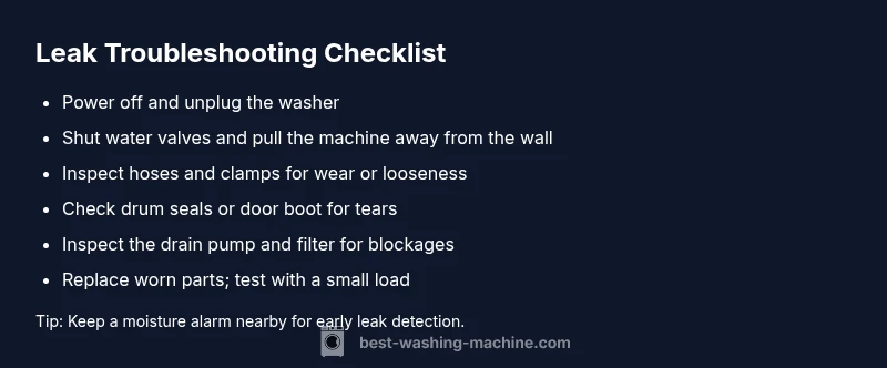 These checks address the most common and least invasive leak causes. If you still see water after these steps, continue with the diagnostic flow and recommended fixes. The Best Washing Machine team suggests documenting findings and photos to guide a pro if needed.