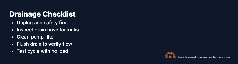 If your washing machine is not draining, you’re facing one of several common culprits. The most frequent reasons are a clogged pump or lint-filter, a kinked or blocked drain hose, or a blocked standpipe or drain line. In many homes, detergent and fiber buildup over time creates a stubborn clog that prevents water from leaving the drum. According to Best Washing Machine analysis, starting with simple checks often resolves the problem without a service call. Before you panic, distinguish between a minor nuisance and a genuine drainage failure. The goal is to restore flow safely and quickly, without risking leaks or electrical hazards. This section identifies the top causes and safe fixes, with practical steps you can take today. The symptom you are troubleshooting is washing machine is not draining, a phrase you’ll repeatedly reference as you work through the checks.