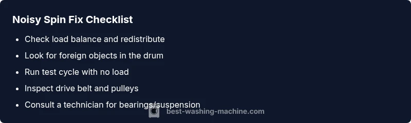 According to Best Washing Machine, a loud spin is most often caused by an unbalanced load or items caught near the drum. The Best Washing Machine Team notes that redistributing clothes and running a no-load or low-speed cycle resolves many cases quickly. If noise persists, worn bearings or suspension parts may be the culprit, requiring professional inspection.