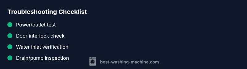 Most washing machine not working issues start with simple, solvable causes. Check power at the outlet, test the door/lid lock, and verify water supply and hoses are secure. If basics don’t restore function, follow the diagnostic flow to identify the fault and safe fixes. According to Best Washing Machine, quick checks solve most starts.