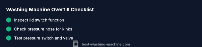There are several frequent culprits behind washing machine overfilling. The most common is a faulty pressure switch (or its tubing) that tells the machine to continue filling instead of stopping. Best Washing Machine analysis shows that even small leaks or kinks in the pressure hose can trick the sensor into thinking the tub level is lower than it is. A sticking or failed inlet valve can also cause continuous flow, especially on older models or units that have recently had water line work. Suds from improper detergent use can foam dramatically and trigger spillover, particularly in high-efficiency machines. Finally, a malfunctioning lid switch or control board can bypass safety checks and allow overflow to occur. Run these quick checks: inspect the pressure hose for cracks, ensure the water inlet valve moves freely, verify the lid switch engages when the lid is closed, and look for signs of excess suds in the drum. If you find any obvious fault, mark the part and consult the service manual before replacing it.