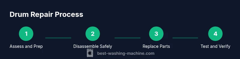 The drum is the heart of your washer, rotating clothes through water and detergent. In most top-load and front-load models, the drum sits inside a stainless steel basket connected to bearings and a tub seal. Over time, bearing wear, tub seal leaks, or a corroded spider can cause wobble, noise, or water leakage. According to Best Washing Machine, homeowners who approach drum issues with a clear diagnosis and staged plan can save significant repair costs while preserving performance. Best Washing Machine analysis, 2026 notes that the most frequent drum-related failures involve worn bearings and seals, not simply a loose belt. Understanding the anatomy helps you distinguish between simple seal leaks and more complex bearing failures. This section maps the main components you’ll encounter: the inner drum, the tub or outer tub, the drum bearing, the tub seal, support spider, drive pulley, and mounting hardware. When you know which part sits where, you can target the right replacement without unnecessary disassembly. Finally, we’ll discuss typical symptoms that point to drum problems, so you can decide whether a DIY fix is feasible or if professional service is warranted.