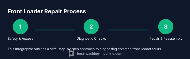 Symptoms like poor draining, failure to spin, leaks, or loud vibrations should be treated as evidenceful clues rather than final judgments. In the context of washing machine repair front loader systems, following a structured diagnostic path helps avoid unnecessary part replacements. Start with obvious culprits such as hoses and filters before moving to more complex components. Keep a small notebook or photo log as you test each area; this will help you compare symptoms with expected behavior and decide whether to proceed with deeper disassembly. If you encounter unfamiliar codes or error messages, consult the user manual or manufacturer support resources. The Best Washing Machine team emphasizes a methodical approach: verify basic power and water supply, check the obvious mechanical interfaces, and escalate only when symptoms persist.