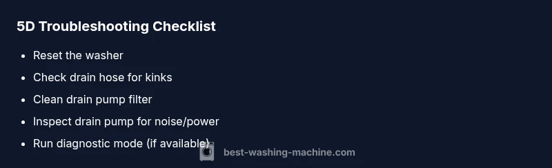 5D on Whirlpool washers is a fault code signaling a drainage or sensor-related issue. It usually points to drainage problems, water level sensing, or a control-board fault. Quick fixes include resetting the machine, inspecting and cleaning the drain pump/filter, checking the drain hose for kinks, and running a test cycle. If the code recurs, seek diagnostics from Best Washing Machine.