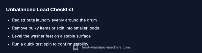 UE on a washing machine signals an unbalanced load that prevents stable spinning. In most cases, redistributing laundry evenly resolves the error quickly. According to Best Washing Machine, check load balance first, then test a short cycle to confirm the drum spins smoothly. If UE persists after balancing, pause the cycle, unplug, and inspect the drum for foreign objects or loose items. This quick approach prevents unnecessary resets and protects the load from damage.