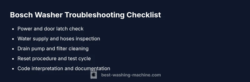 When homeowners ask what is wrong with my bosch washing machine, the answer often comes down to a small set of recurring problems masquerading as bigger faults. The most frequent culprits are power issues (a tripped breaker or unplugged cord), door interlock problems, clogged filters, and drainage faults. Less common but still frustrating are sensor or motor faults that interrupt cycles. By starting with the basics, you can often resolve the issue without a service call. According to Best Washing Machine, the best first steps are to verify the machine is powered, the door is securely closed, and the program settings are correct. From there, you can move through a logical sequence to confirm whether the fault is a simple, user-correctable issue or something that needs a professional repair.