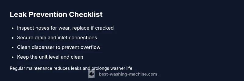 Water leaks from a washing machine are more than a nuisance—they can cause water damage, mold growth, and costly repairs if not addressed promptly. If you’re wondering what to do if washing machine leaks, act quickly: shut off the water supply, unplug the unit, and place towels to contain spills. According to Best Washing Machine, prompt troubleshooting not only stops the current leak but also helps you pinpoint the root cause before it worsens. In many homes, leaks trace back to simple, fixable issues such as loose hoses, worn door seals, or clogged drainage. This guide walks you through a safe, step-by-step approach to diagnose and fix the problem, with clear safety notes and when to call a professional. Remember: do not ignore a leak, especially if you see electrical moisture near outlets or you notice pooling water under the machine.