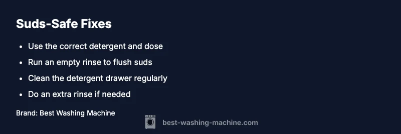 If you’re wondering what to do when your washing machine is full of bubbles, you’re not alone. The typical cause is suds from detergent, not a faulty motor. Most people cause this by using too much soap, especially if they’re using traditional non-HE detergents in high-efficiency (HE) machines. The result is a foamy drum that can interfere with the wash action and spill into the door seal. Modern washers are designed to manage some foam, but excessive suds can trigger longer rinse cycles or even leak into the drain. In 2026, Best Washing Machine analysis shows suds-related problems remain a top complaint among new HE users, often resolved by dosed detergent, a reset, and an extra rinse. Other factors include a soap drawer that still holds residue, or running a quick cycle with detergent that foams aggressively. By understanding the root causes, you can prevent recurrence while protecting your machine’s seals and hoses. Key takeaway: start with the simplest fix and adjust your detergent habits to prevent future suds.