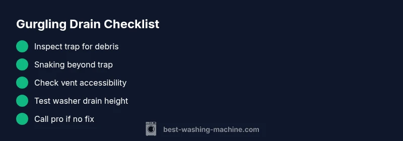 Gurgling usually indicates air trapped in a partially blocked or poorly vented drain. The washer’s discharge can push air through the trap, creating noise and potential slow drainage. Venting and trap maintenance often resolves the issue.